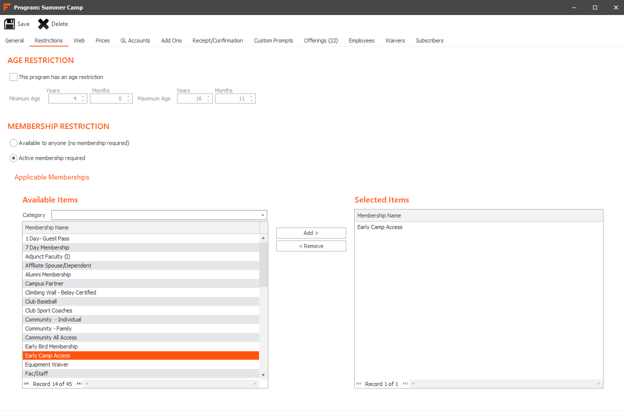If you want to offer early registration to previous participants, you can pull a list from last year's programs. You can then import a membership, matching on an M-#. From there, you can restrict the program by the imported membership for the early registration timeframe.
