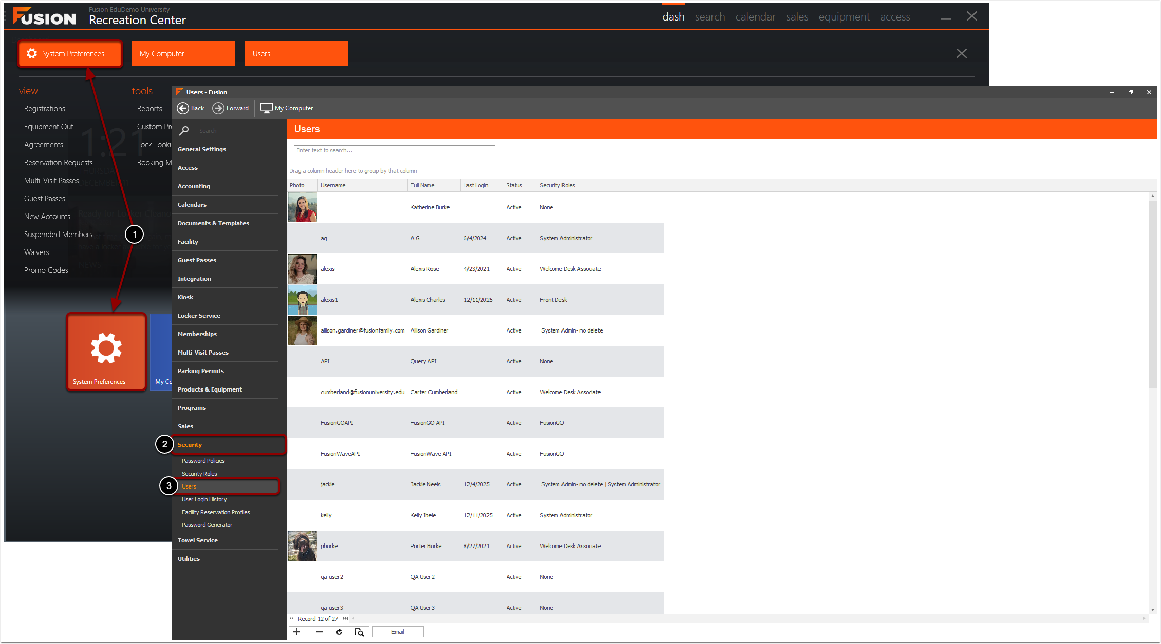 To navigate to the Users area in Fusion: