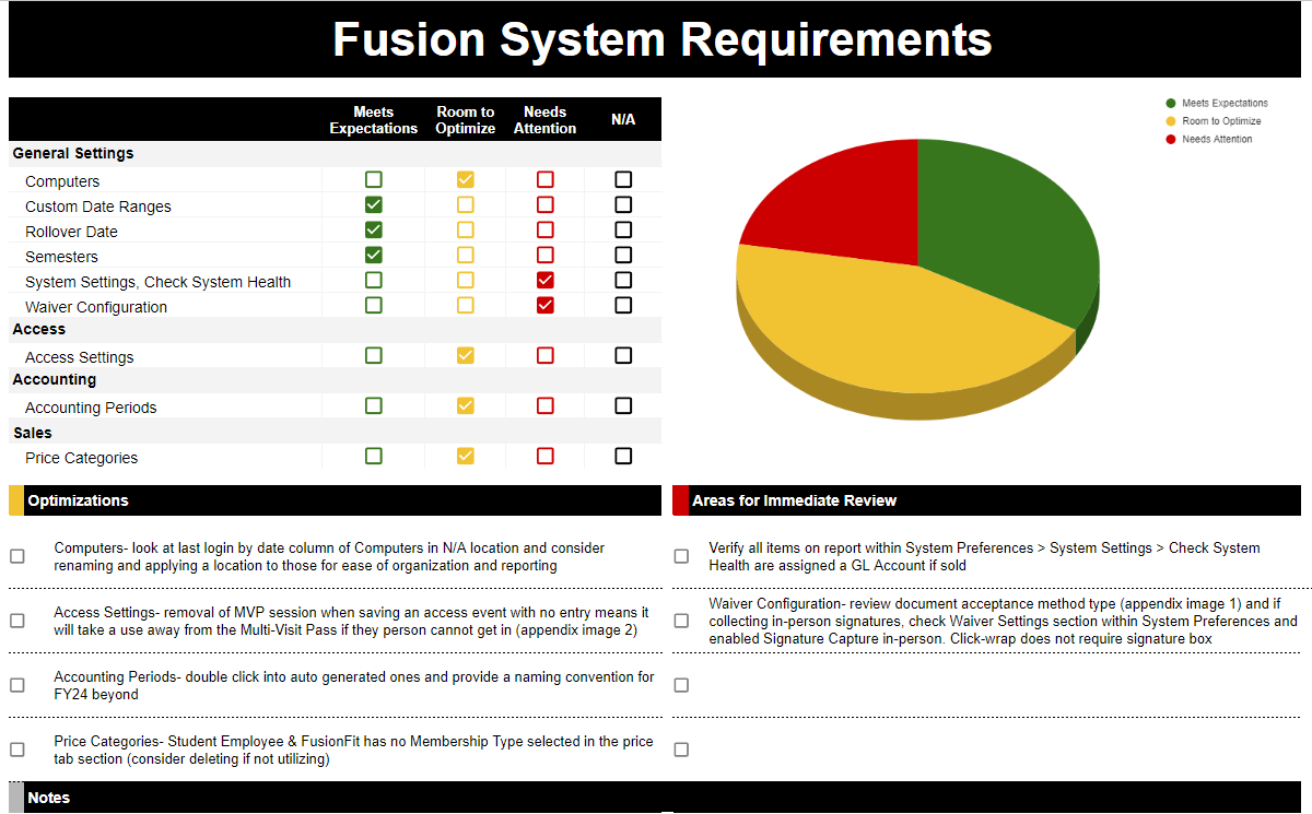 Think of it as a diagnostic for your Fusion system. You’ll receive a clear, visual report outlining what’s working well, where there’s room to improve, and what needs immediate attention so you can move forward with confidence.